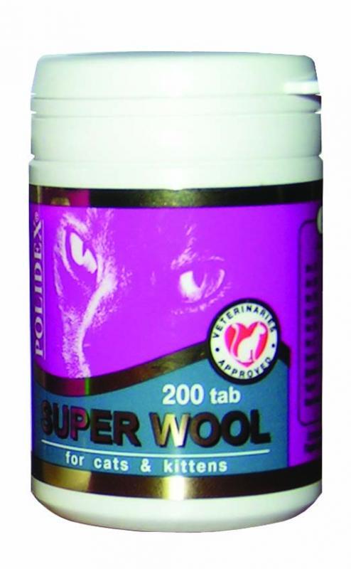 Полидекс Супер шерсть (Polidex Super wool) для кошек и котят, банка 200 таб . Цена: 510 руб . Добавить в автозаказ . Раздел: Витаминные и минеральные препараты . Полидекс Супер шерсть в 1 таблетке содержит витамин B 1 — 0,02 мг, витамин B 5 — 0,6 мг, витамин B 6 — 0,4 мг, витамин B 12 — 1 мкг, витамин B C . . .