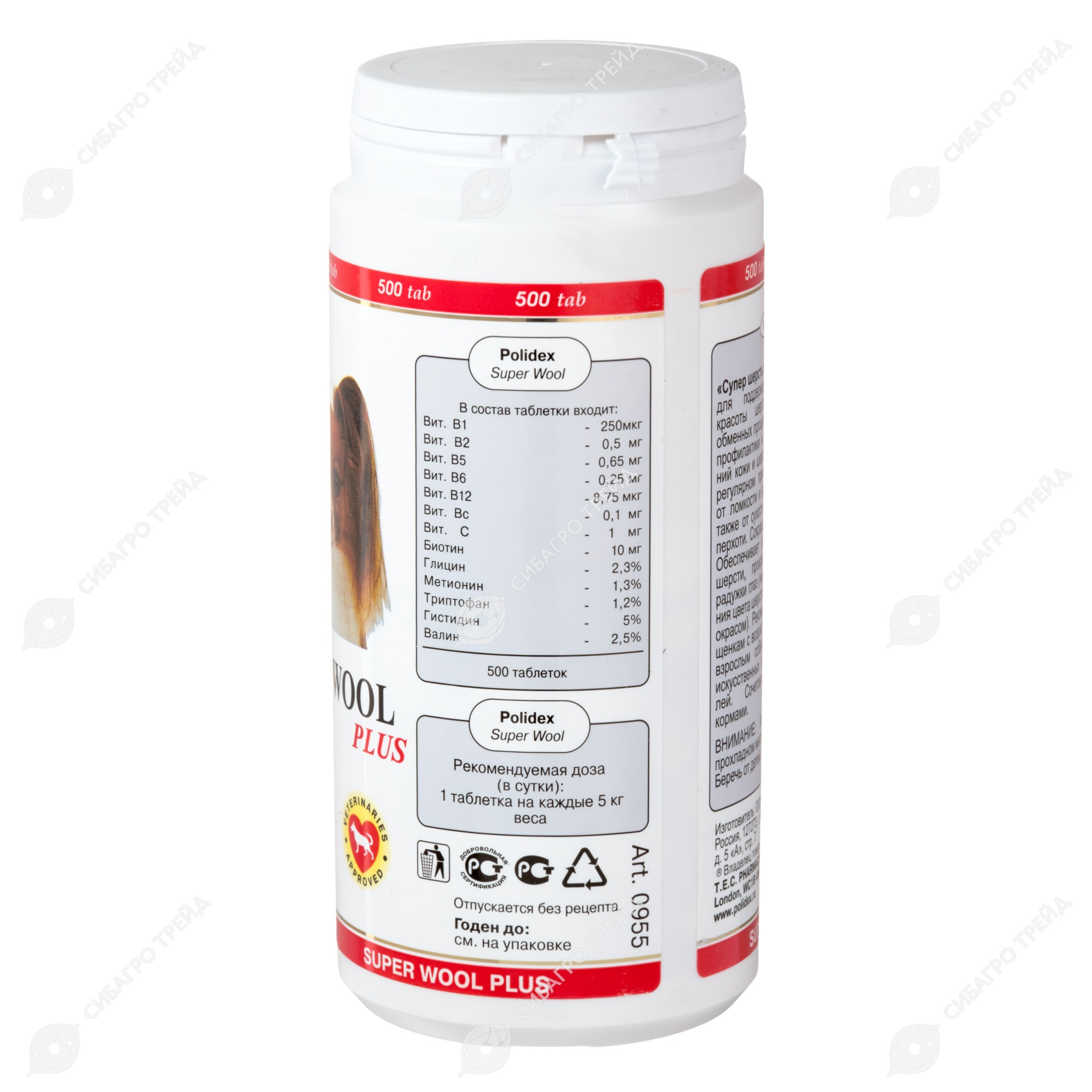 Полидекс Супер шерсть плюс в 1 таблетке содержит витамин b1 — 0,25 мг, витамин b2 — 0,5 мг, витамин b5 — 0,65 мг, витамин b6 — 0,25 мг, витамин b12 — 8,75 мкг, витамин bc — 0,1 мг, витамин С — 0,5 мг, биотин — 10 мг, глицин — 2,3 %, метионин — 1,3 % . . .
