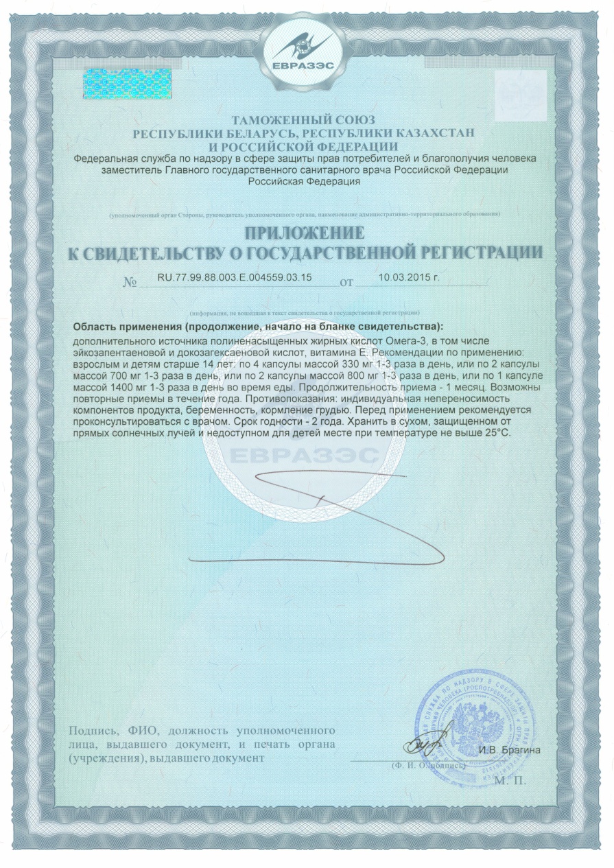 Рекомендуется в качестве биологически активной добавки к пище - дополнительного источника полиненасыщенных жирных кислот Омега- 3 (эйкозапентаеновой и докозагексаеновой кислот) . Рекомендации по применению: детям старше 3 -х лет и взрослым по 3-6 капсул в течение дня . Продолжительность приема - 1 месяц . Возможны повторные приемы в течение года .
