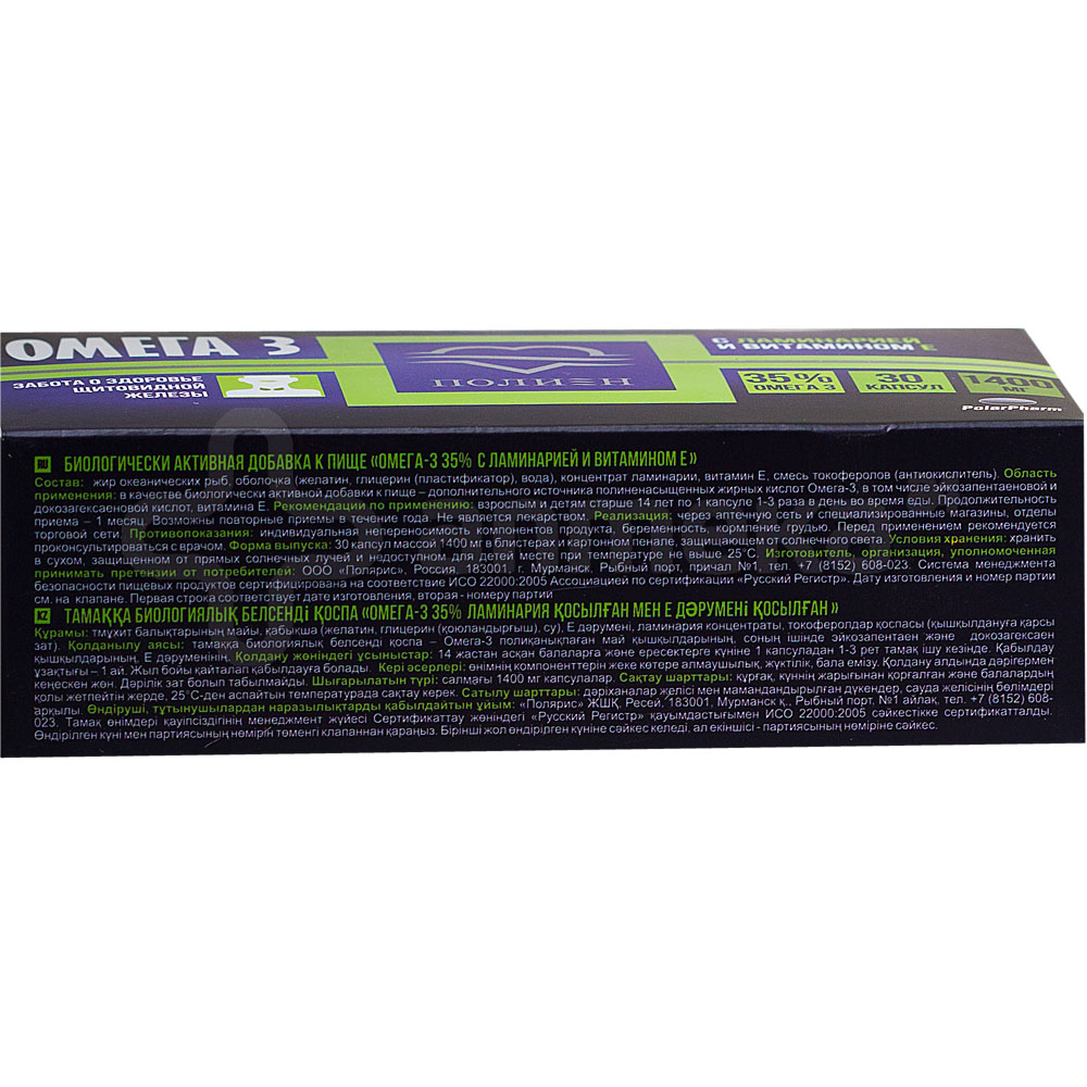 "Полиен" Омега-3 с ламинарией и витамином Е: способствует нормализации функций щитовидной железы способствует улучшению работы эндокринной системы способствует поддержанию нормального обмена веществ в клетках организма "Полиен" Омега-3 — полезная привычка для вашего здоровья .