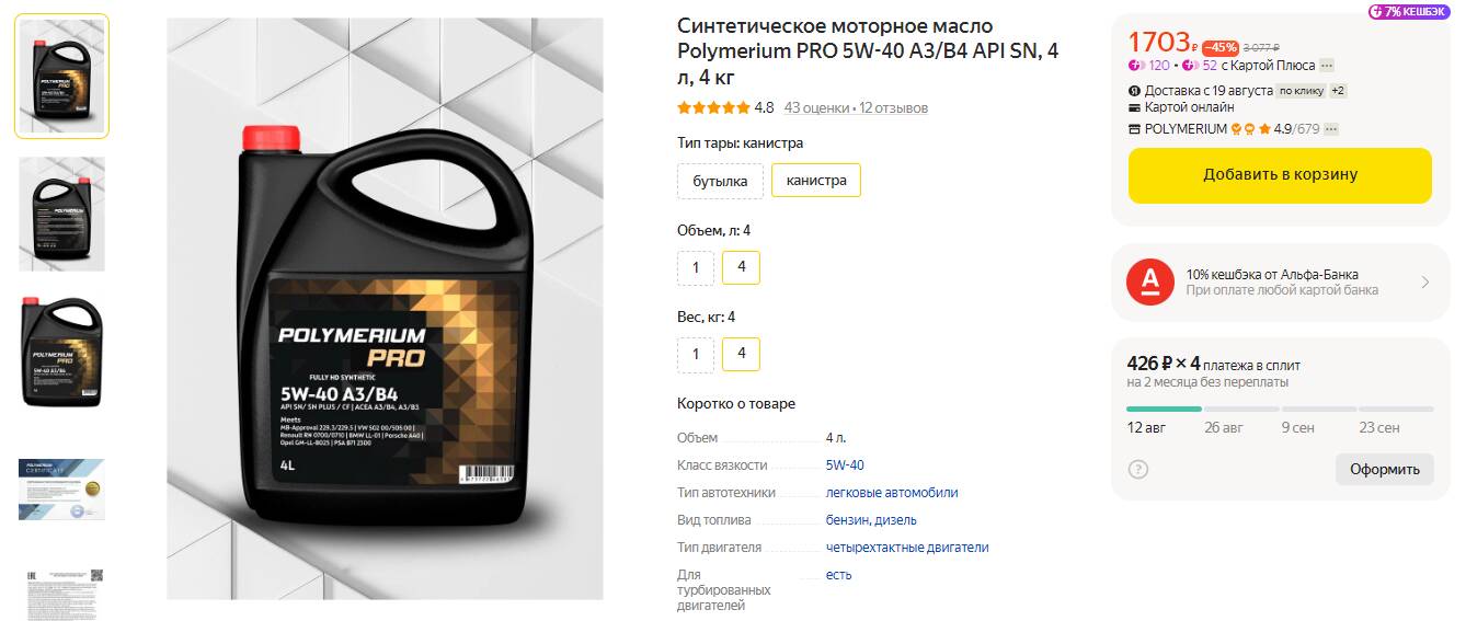 Полимериум про 5w40 134 фото