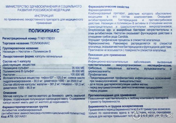 Полижинакс сколько растворяется