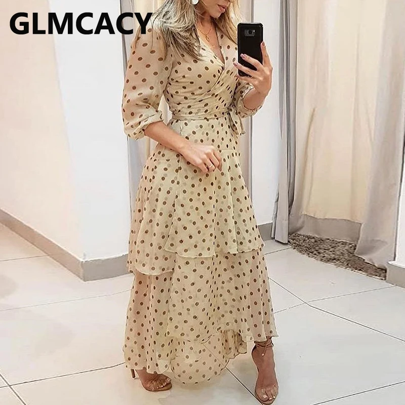 Cheap Dresses, Buy Quality Women's Clothing Directly from China Suppliers:Women Polkadot Print Layered Ruffles Maxi Dress Enjoy Free Shipping Worldwide! Limited Time Sale Easy Return .
