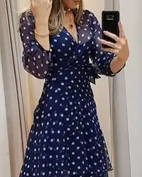 Pattern Type:Polkadot Print,Layered,Ruffles,Random Print Material:Chiffon ,comfotable to wear Sleeve Style:Long Sleeve Length:Maxi Occassion:Casual,Weekend Package Include:1* Dress(With Lining) Note: There might be 2-3% difference according to manual measurement . Please check the measurement chart carefully before you buy the item .