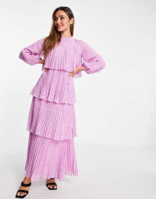 Polkadot Print Layered Ruffles Maxi Dress Online . Discover . . .