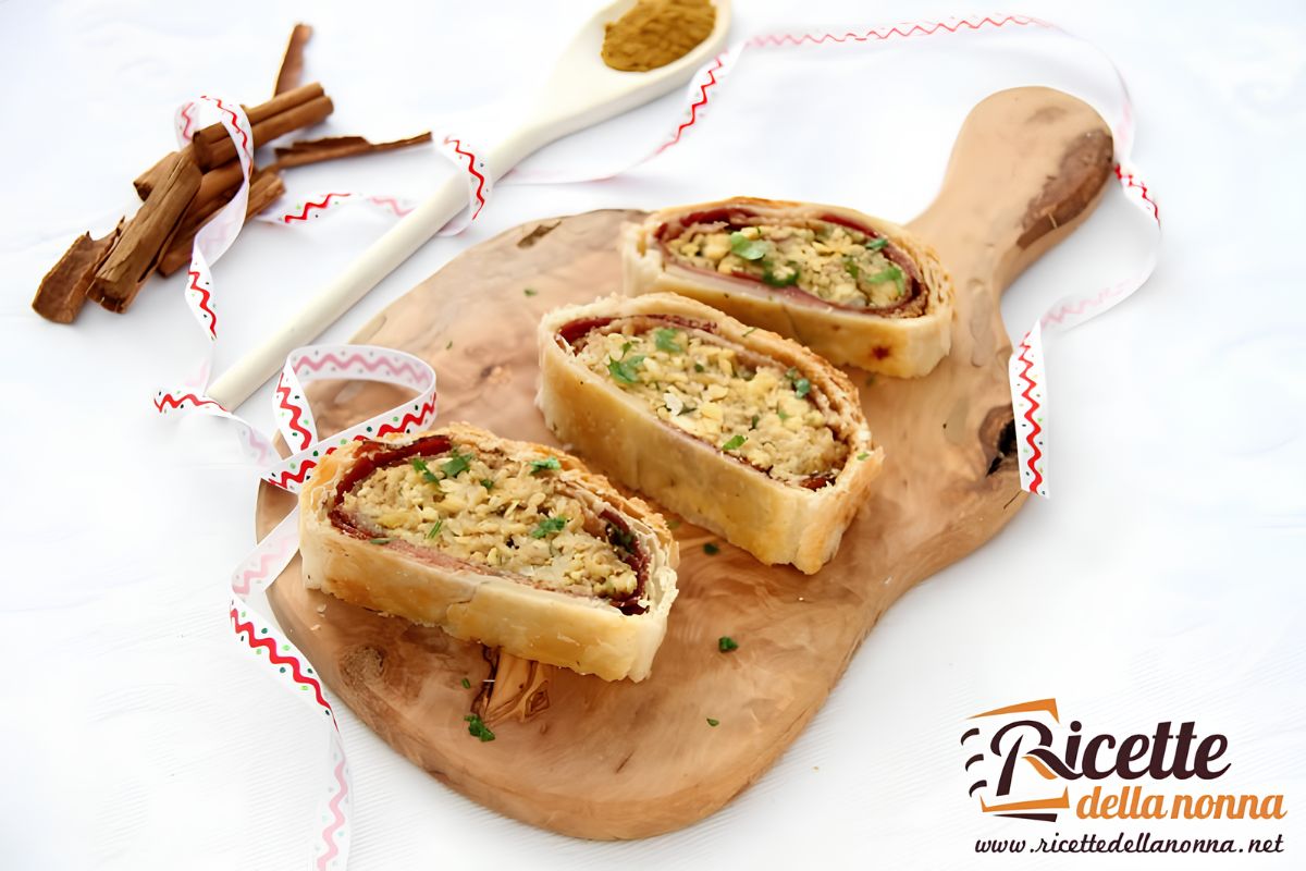 Ti è avanzato il pollo arrosto? Meglio così, perché è proprio da qui che nasce una delle versioni più golose del pollo in crosta. Questa ricetta parte dall’idea del recupero, ma la porta a un livello da vero piatto delle feste, trasformando un avanzo in un secondo scenografico e sorprendente. Il pollo, già cotto e quindi tenero, viene ulteriormente valorizzato da una miscela di spezie, dove note dolci e leggermente piccanti si intrecciano creando un equilibrio aromatico perfetto. A racchiudere il tutto c’è una crosta irresistibile: fettine di speck, che regalano sapidità e una leggera affumicatura, e uno scrigno di pasta sfoglia dorata e fragrante. Il risultato è un piatto che colpisce al primo sguardo e conquista al primo morso, ideale per chi vuole portare in tavola qualcosa di diverso dai soliti arrosti ripieni della tradizione. È una ricetta che unisce praticità e creatività, perfetta per stupire con semplicità.