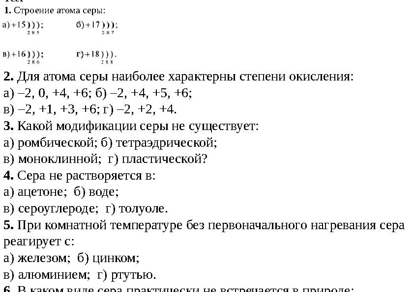 Полный разбор серы