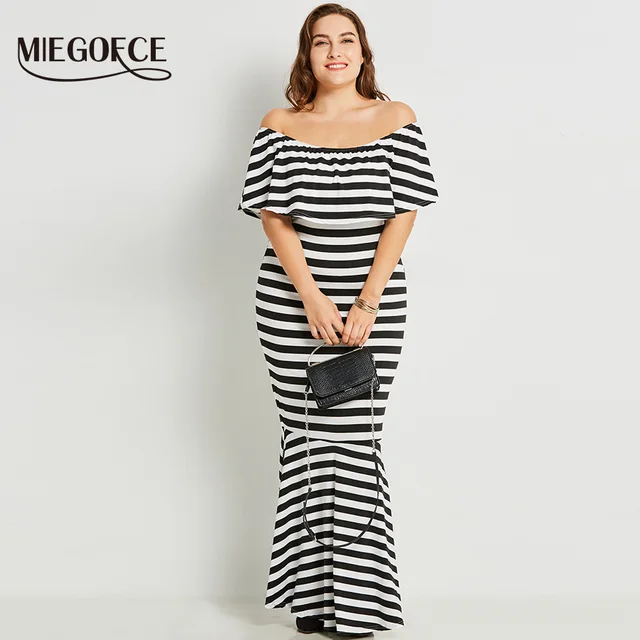 Платье полосатое с открытыми плечами