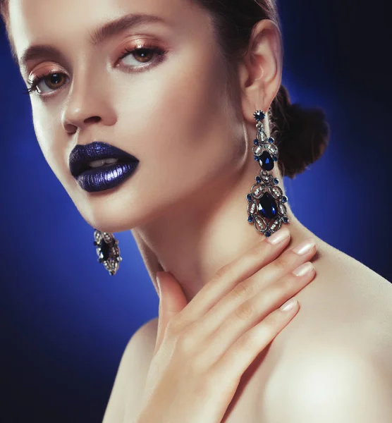 Половина лица молодой девушки на синем фоне . отопластика . . .