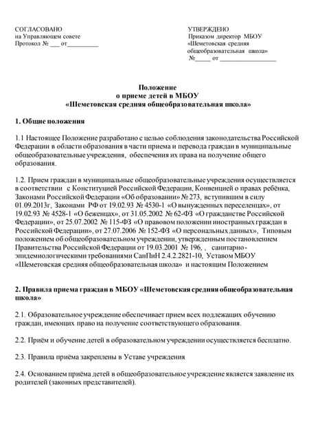 Положение о порядке приема перевода обучающихся