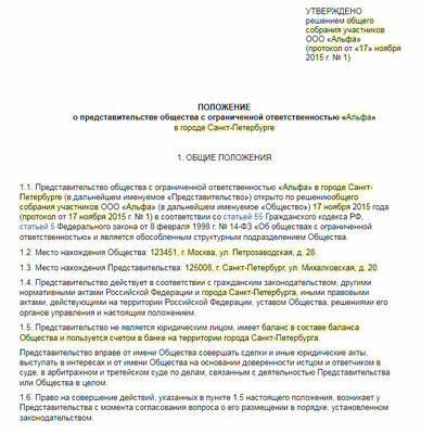 Положение о представительстве филиале 86 фото