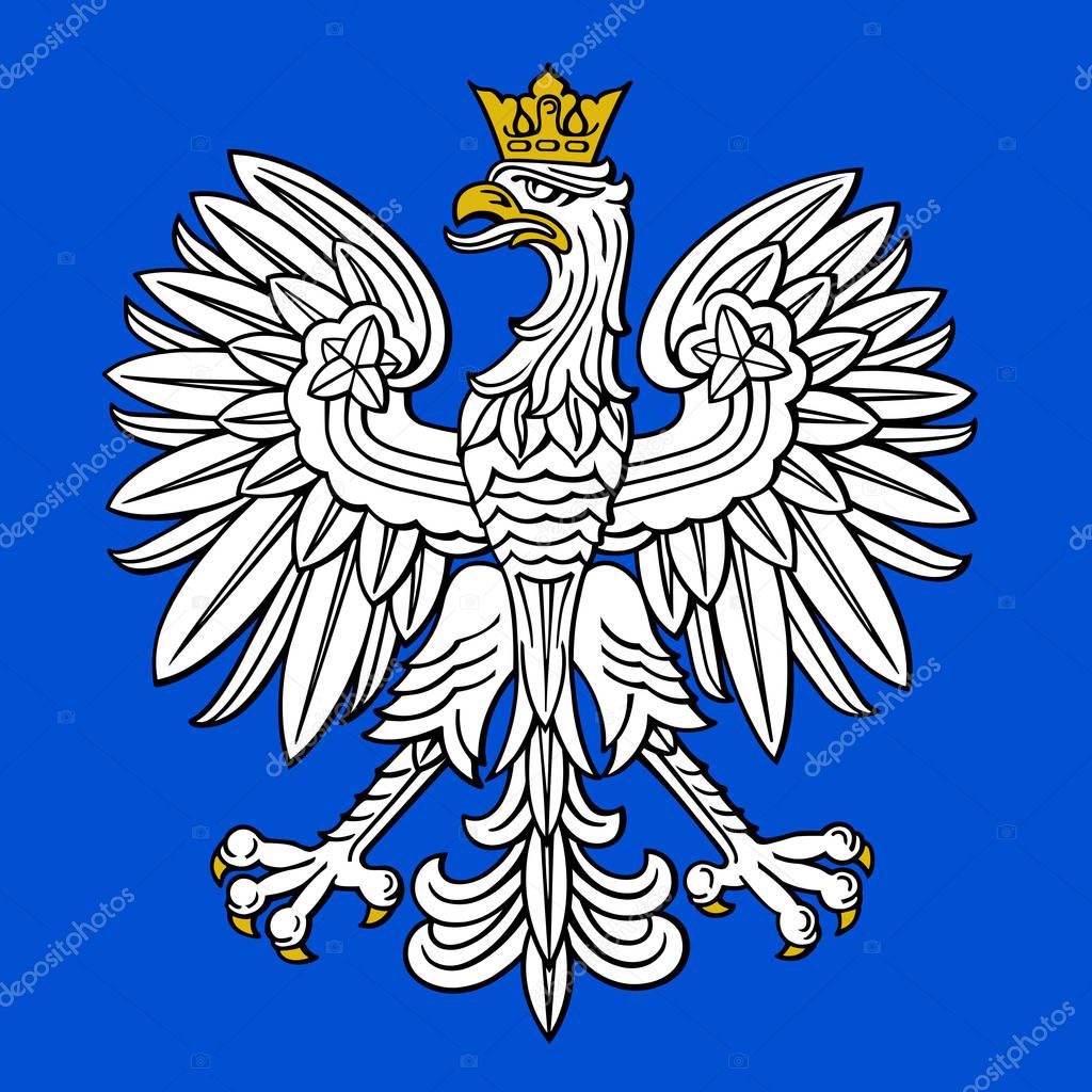 Герб Польши — официальный государственный символ Республики Польша . Изображение представляет собой белого орла с золотыми когтями и клювом, в золотой короне . . .