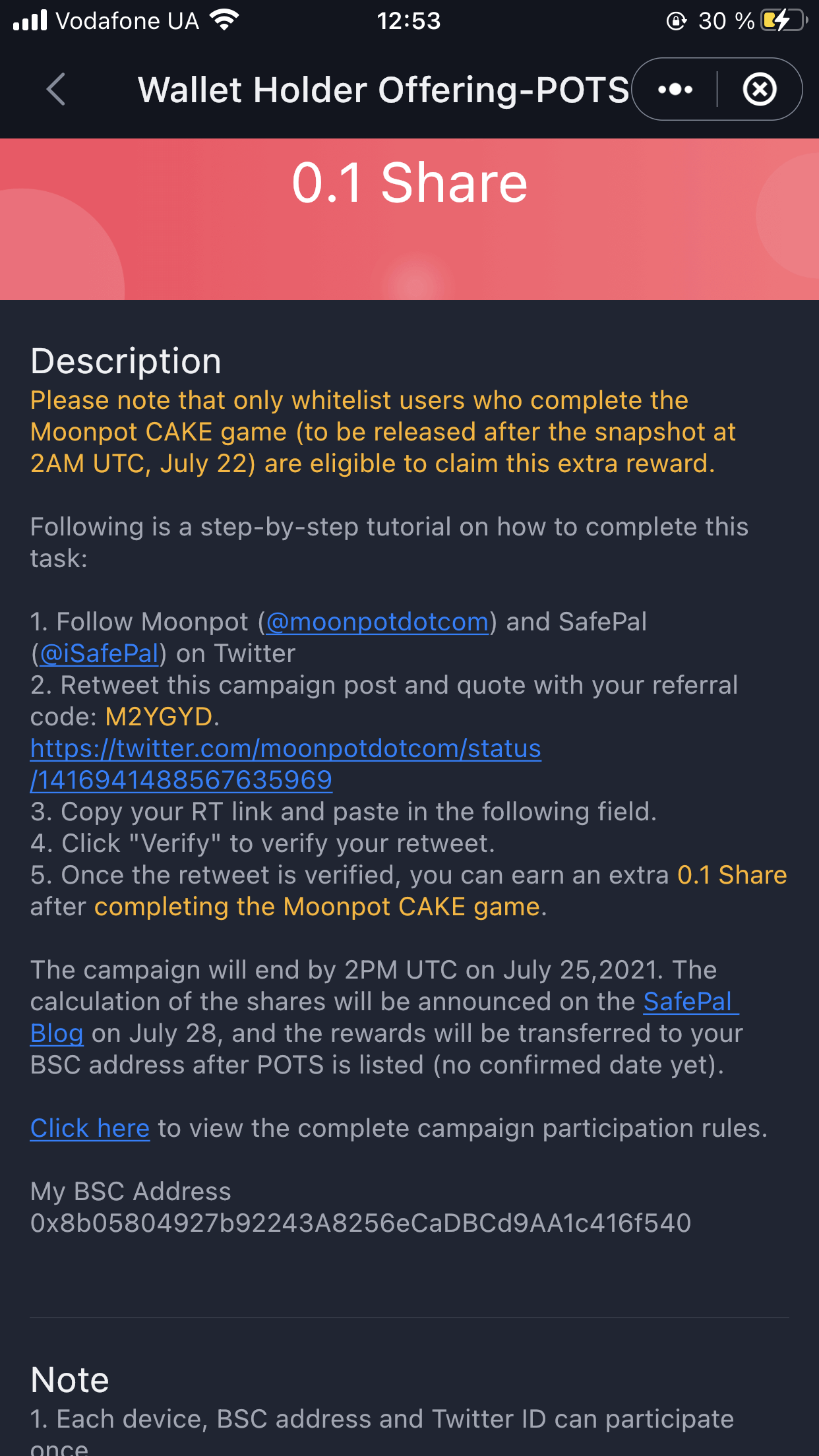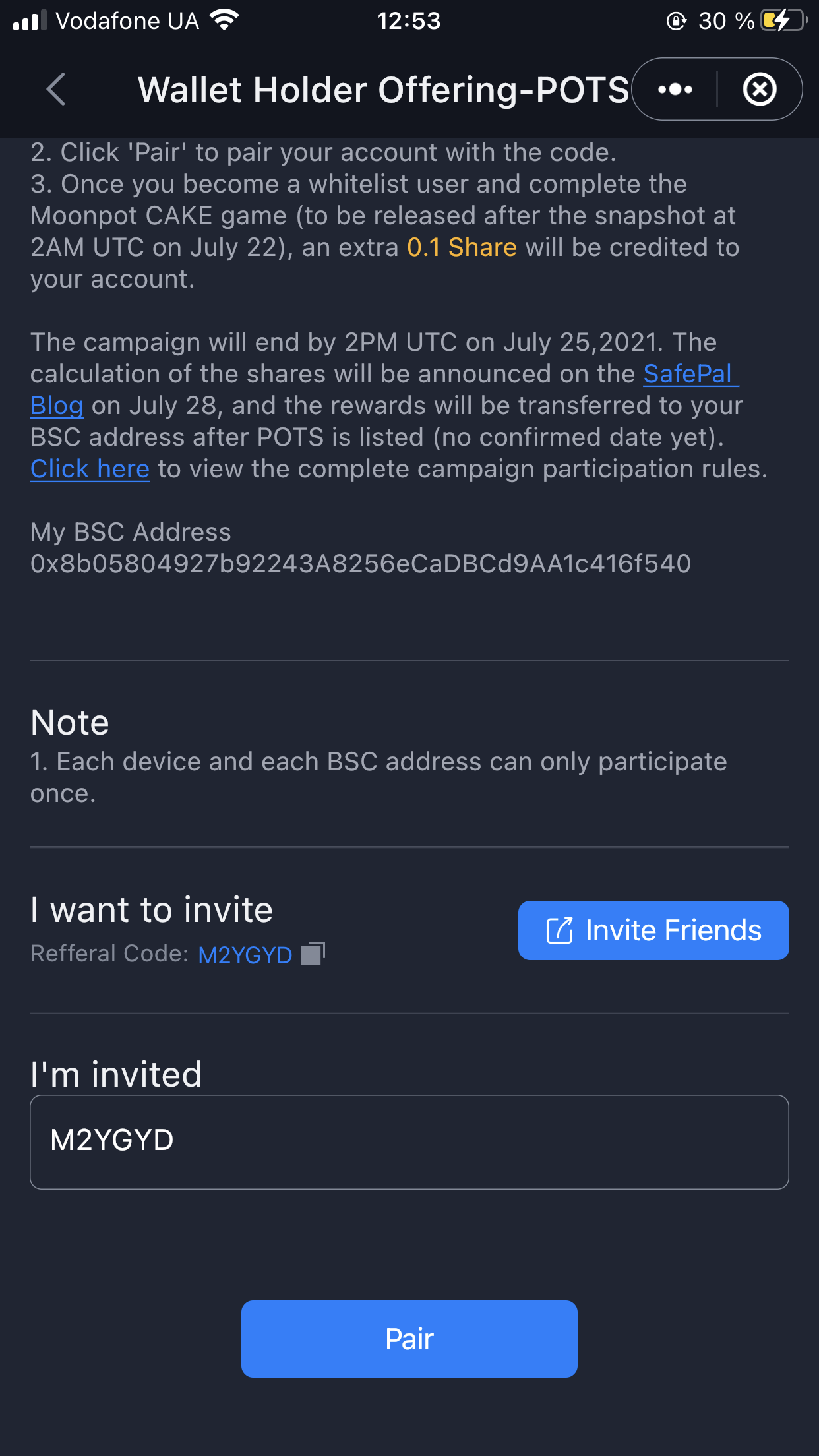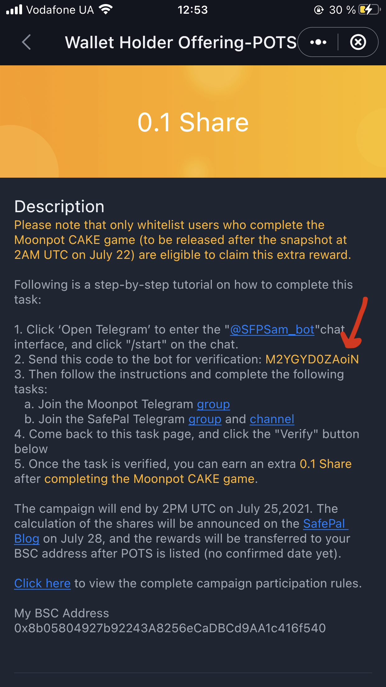 Получаем аирдроп POTS от SafePal