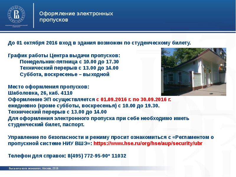 Получение пропуска вшэ