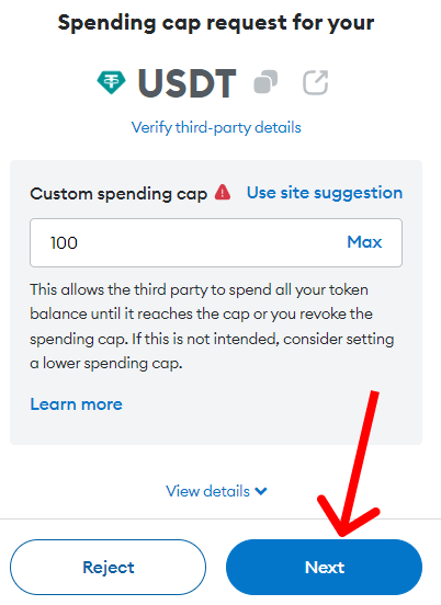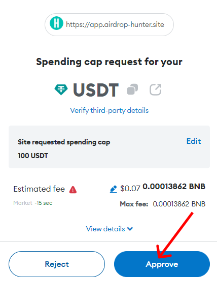 После выбора необходимой суммы нажимаем "Approve":