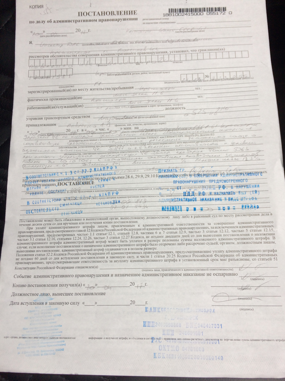 Получить копию постановления штрафа