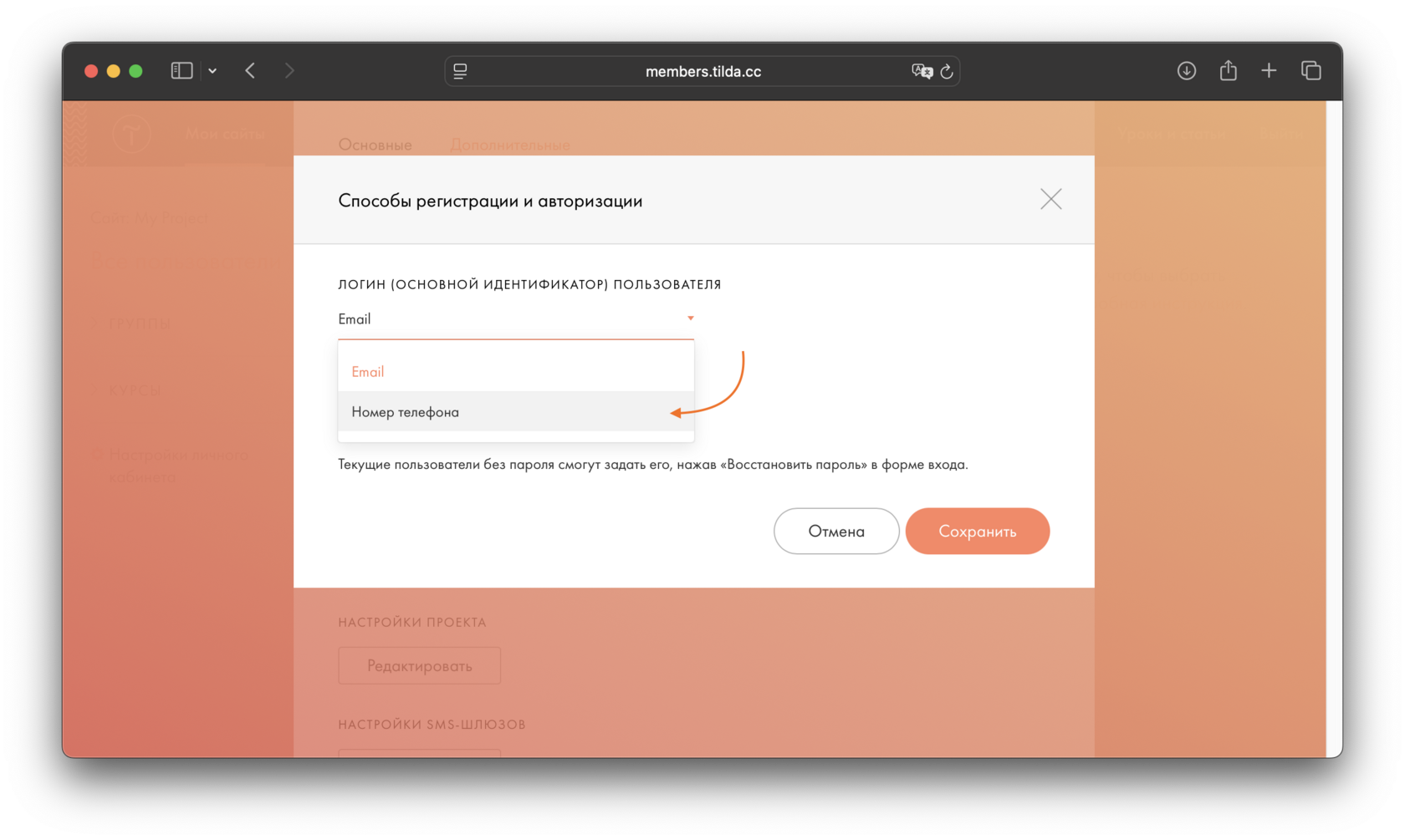 Получить пароль через смс