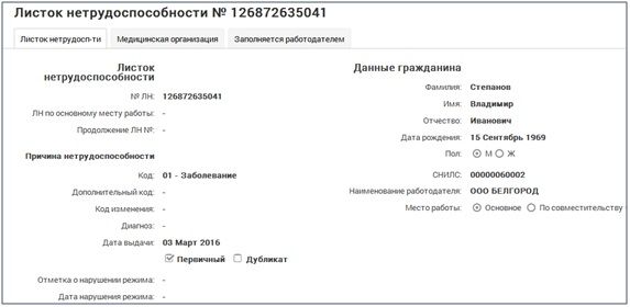Поля листка нетрудоспособности