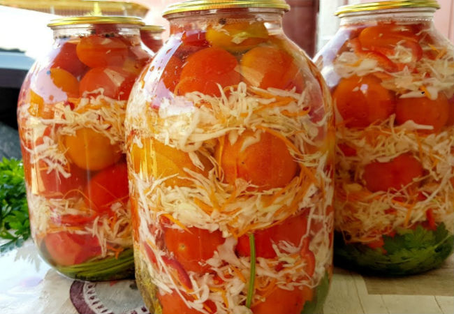 Помидоры с капустой на зиму в банках