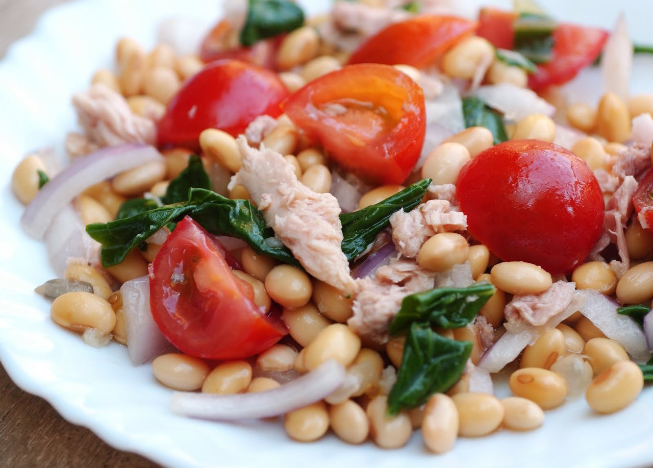 Помидоры фасоль тунец