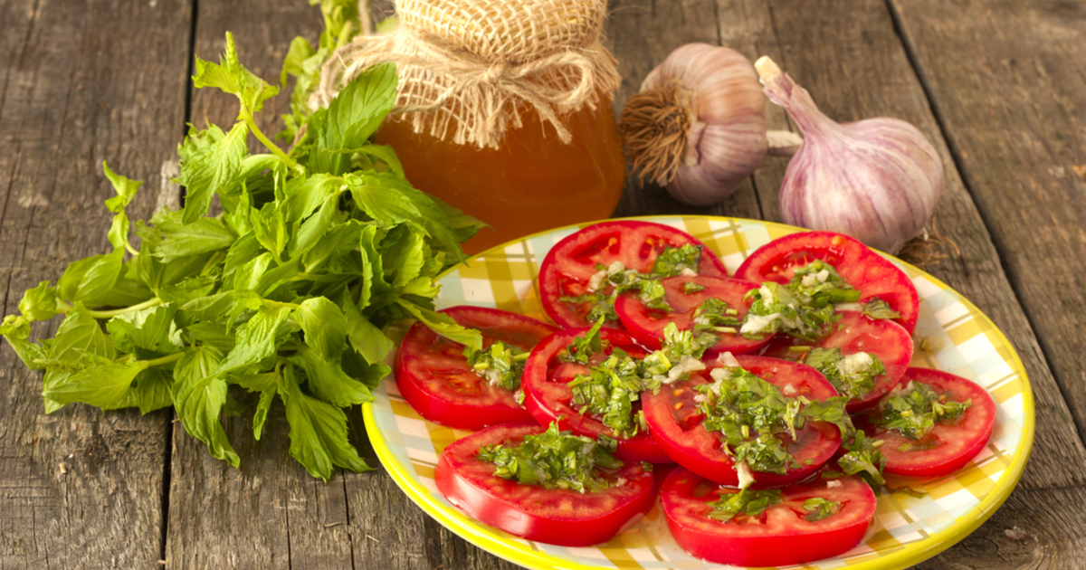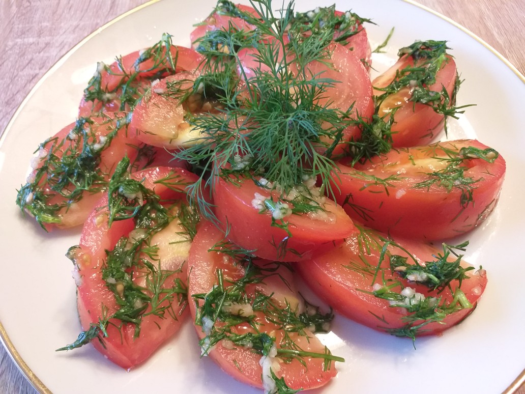 Помидоры с чесноком и маслом