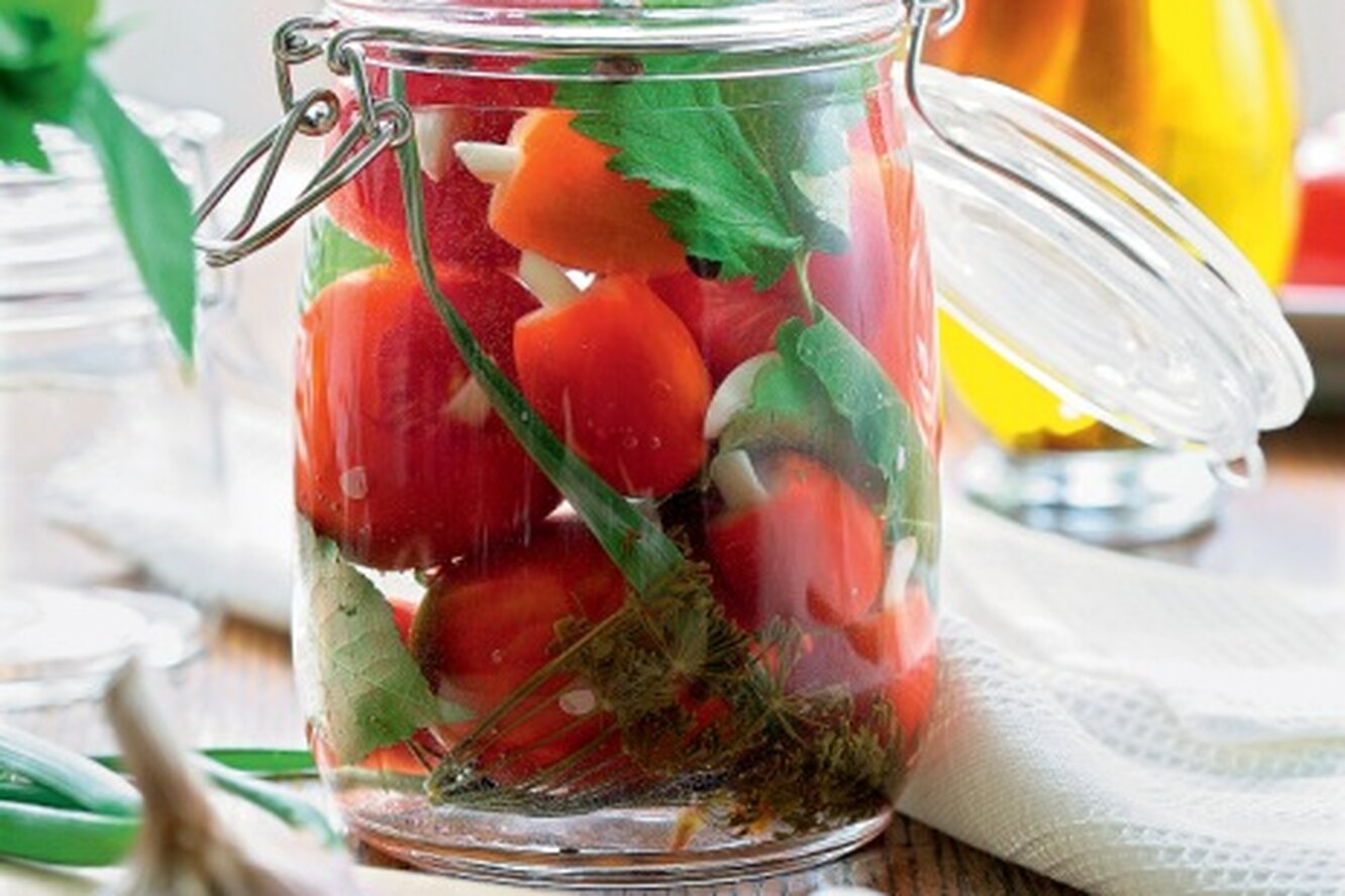 Засолка помидор с морковной ботвой на зиму