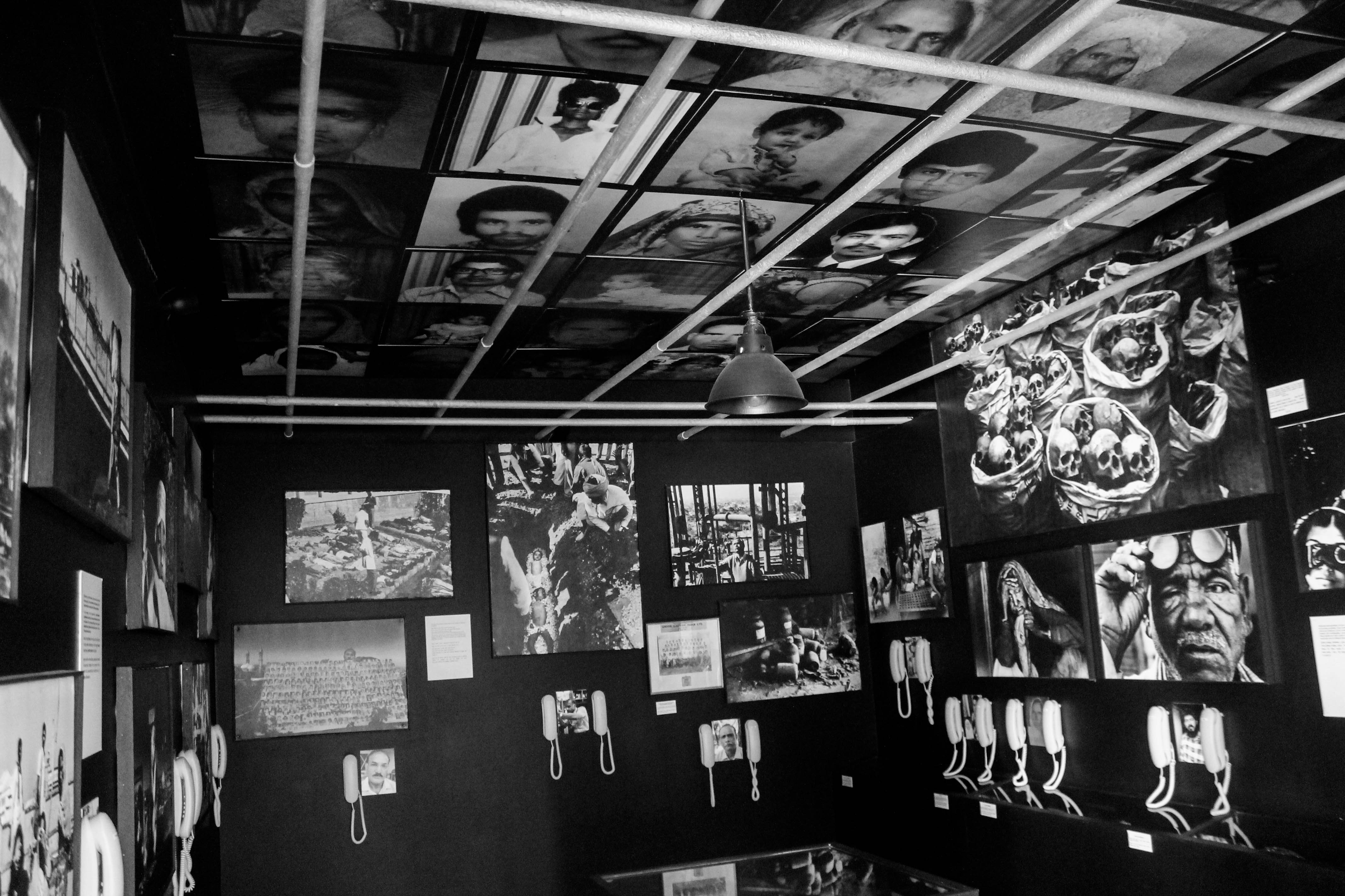 Концепция музея, разработанная журналистом и музеологом Рамой Лакшми, состояла в создании музея устной истории. Музей активно поощряет выживших рассказывать свои истории самой страшной промышленной катастрофы в мире и одного из старейших движений за экологическую справедливость в Индии. Музей начинается с «Темной комнаты», полностью выкрашенной в черный цвет и наполненной черно-белыми фотографиями, сделанными сразу после трагедии. Памятные вещи — одежда жертв или вещи, купленные для них близкими, — заключены в стеклянные боксы. Если посмотреть вверх, можно увидеть фотографии тех, кто погиб в результате трагедии.