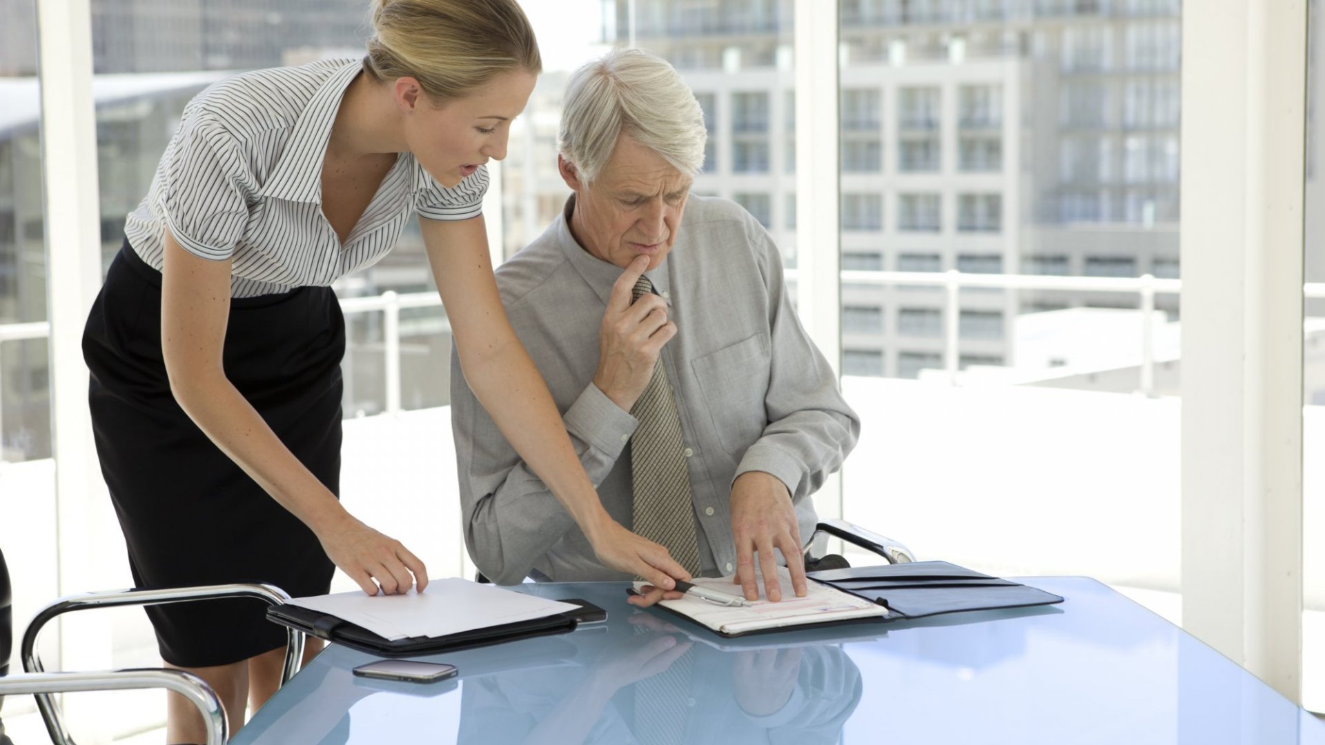 Помощница помогает боссу и отдается его партнерам во время встречи