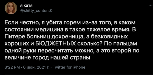 Поизучав немного обстановку и охуев от аппетитов, я решила спросить насчет медицинского насилия от врачей в адрес Кати. Заодно сделала небольшой анонс у себя на старом аккаунте в твиттере - мол, скоро будет чтиво. Напомню – Катя обвиняет в случившемся врачей и заявляет, что ее привязывали и "лечили галоперидолом". Я попыталась узнать название больницы, наведаться в гости Кате и вот....