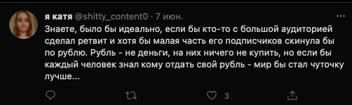 В феврале 2021 года я на своем старом аккаунте заявила, что грядет пиздец и я втянута в такую поеботу с ложным благотворительным сбором, что просто мама не горюй.