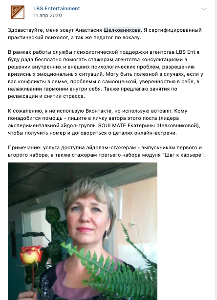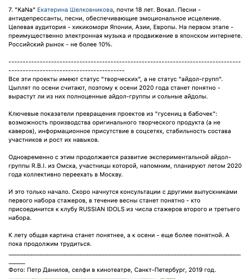 Вот Петр Данилов в группе презентует Катины успехи и вступление в агенство: