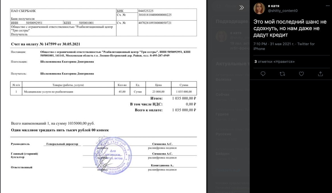 Поэтому, предлагаю временно перенестись на февраль 2021 года. Несмотря на тягу к веществам и приключениям, Катя - человек усердный, этот сбор мгновенно облетел ВК и инстаграм. Мне попалось на глаза и решила проверить сугубо из-за формулировки "ошибка медперсонала".