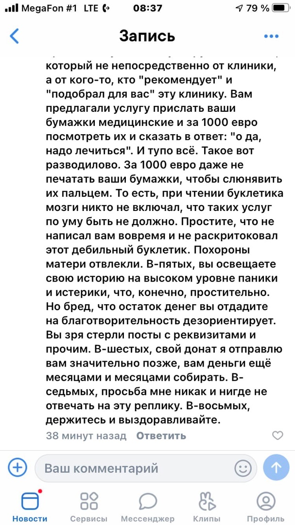 – Итог: Катя оплатила "консультацию" в немецкой клинике суммой в тысячу евро – но увы, подлая немчура оставила ее без консультаций и отказались вернуть средства. Естественно, название клиники Катя так и не сказала, погоревала и "закрыла сбор", посетовав на мошенников. Гы.
