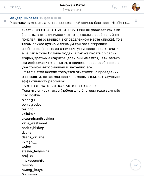 Что касается коллег Кати – одна из них (она же юный талант Stefany Lynn/Дамир Авдеев/Ильдар Филатов), по крайней мере, абсолютно осознанно и с каким-то остервенением распространяла информацию о мошенническом сборе и в точности своевременно меняла ники, удаляла страницы и закрывала их. Что тоже заслуживает отдельного внимания и тоже в свое время заслужило внимание уже знакомого нам Петра Данилова:
