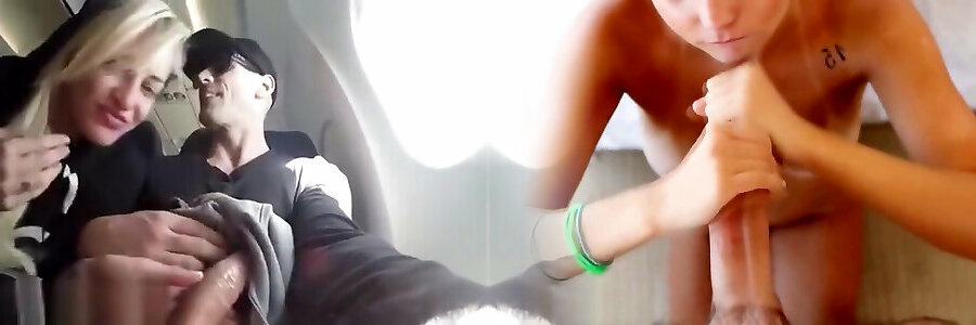 Una coppia amatoriale straniera gira un filmino porno durante un viaggio in aereo . I due si chiudono nella toilet e lei gli fa un bel pompino ed infine si fa sborrare sulle tettine