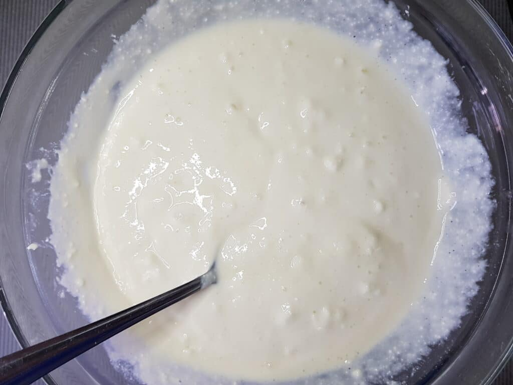 2. К яичной смеси добавить творог. Если он крупнозернистый, то измельчить блендером, чтобы не было комочков.