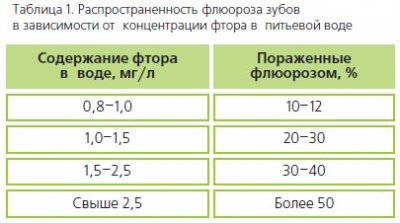 Пониженное содержание фтора в воде