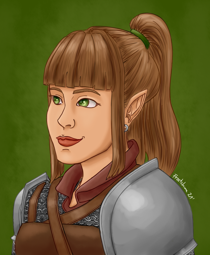 Ponytail Brunette Lady with Smiling Face Exhibits Her Puffy Mammoth