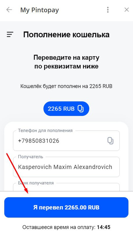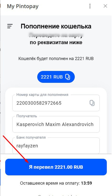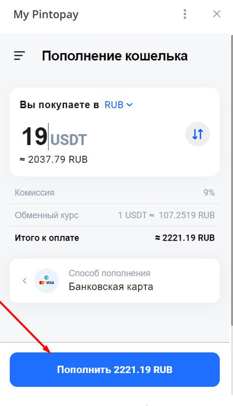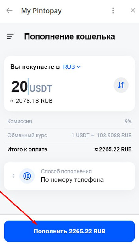 Пополнение PinToPay в рублях