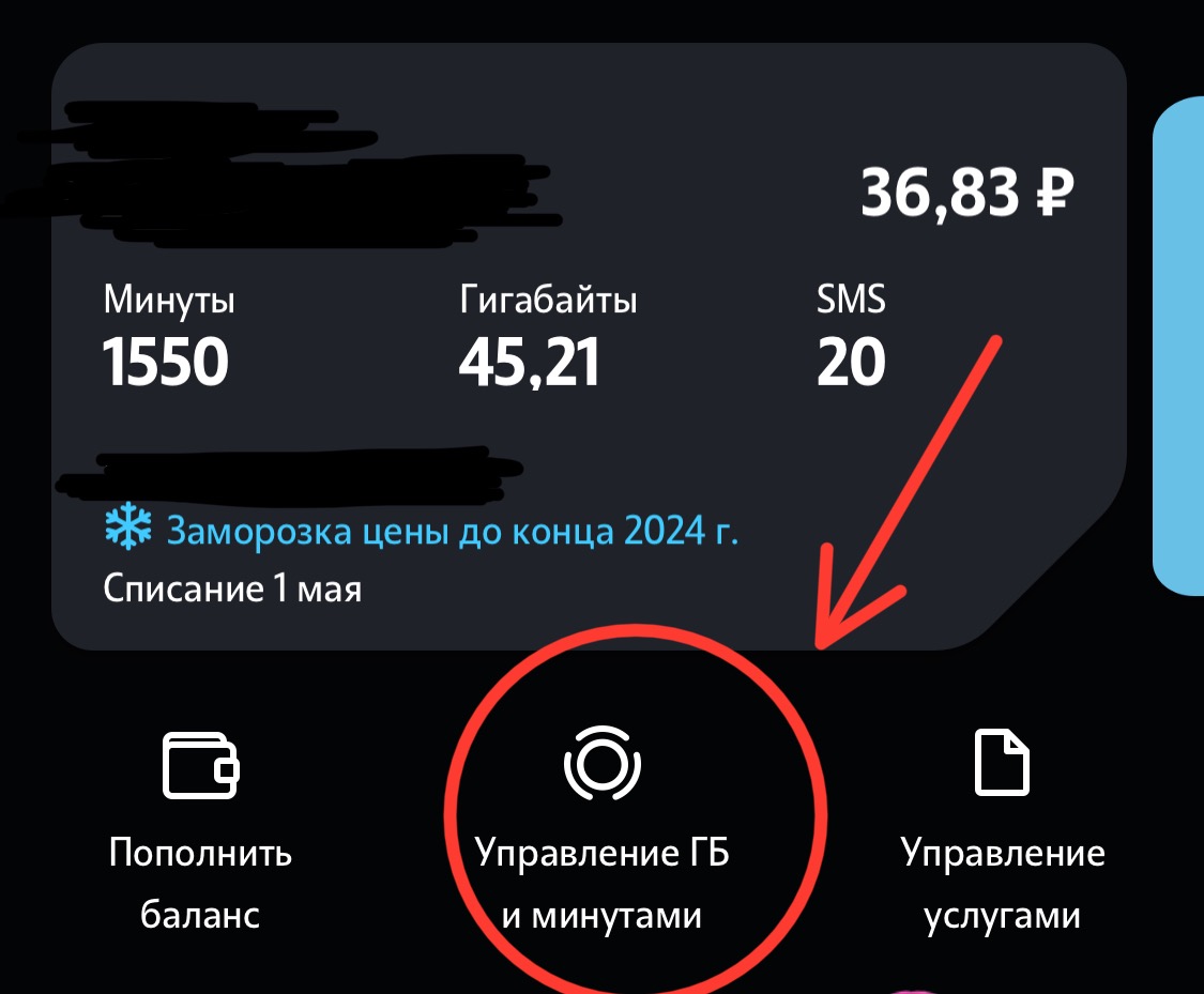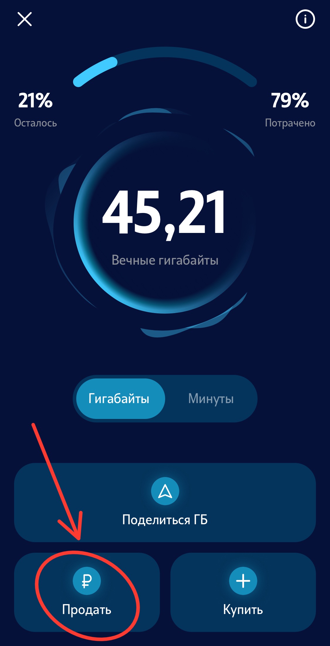 Выбираем гигабайты или минуты и нажимаем кнопку «Продать»