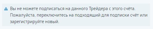 Если тип торгового счета или баланс не соответствуют условиям, функция подписки на трейдера будет отсутствовать и вы увидите такие сообщение: