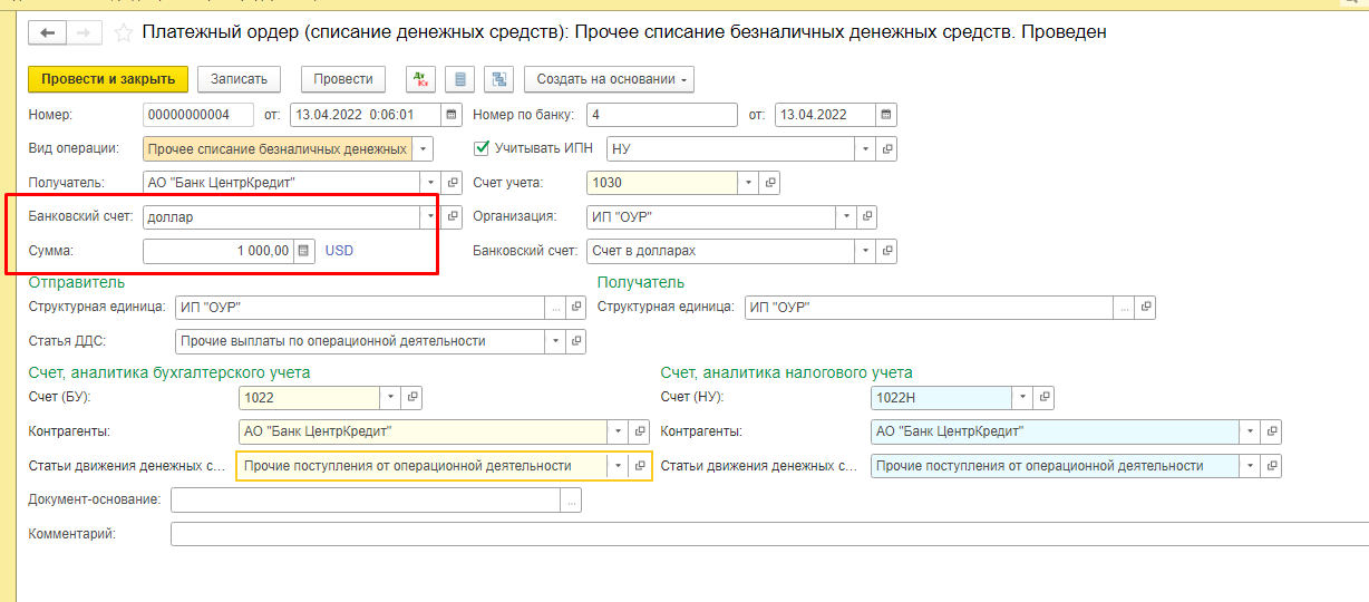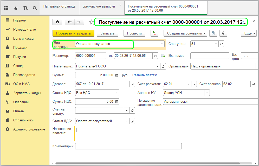 Пополнение средств на расчетном счете