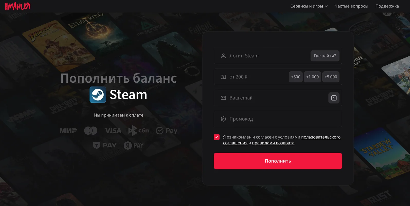 Пополнить стим с маленькой комиссией