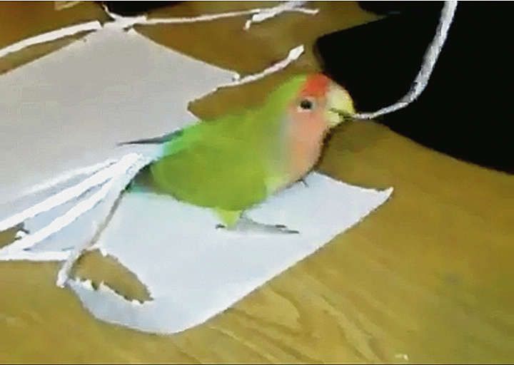 Попугай дрожит хвост