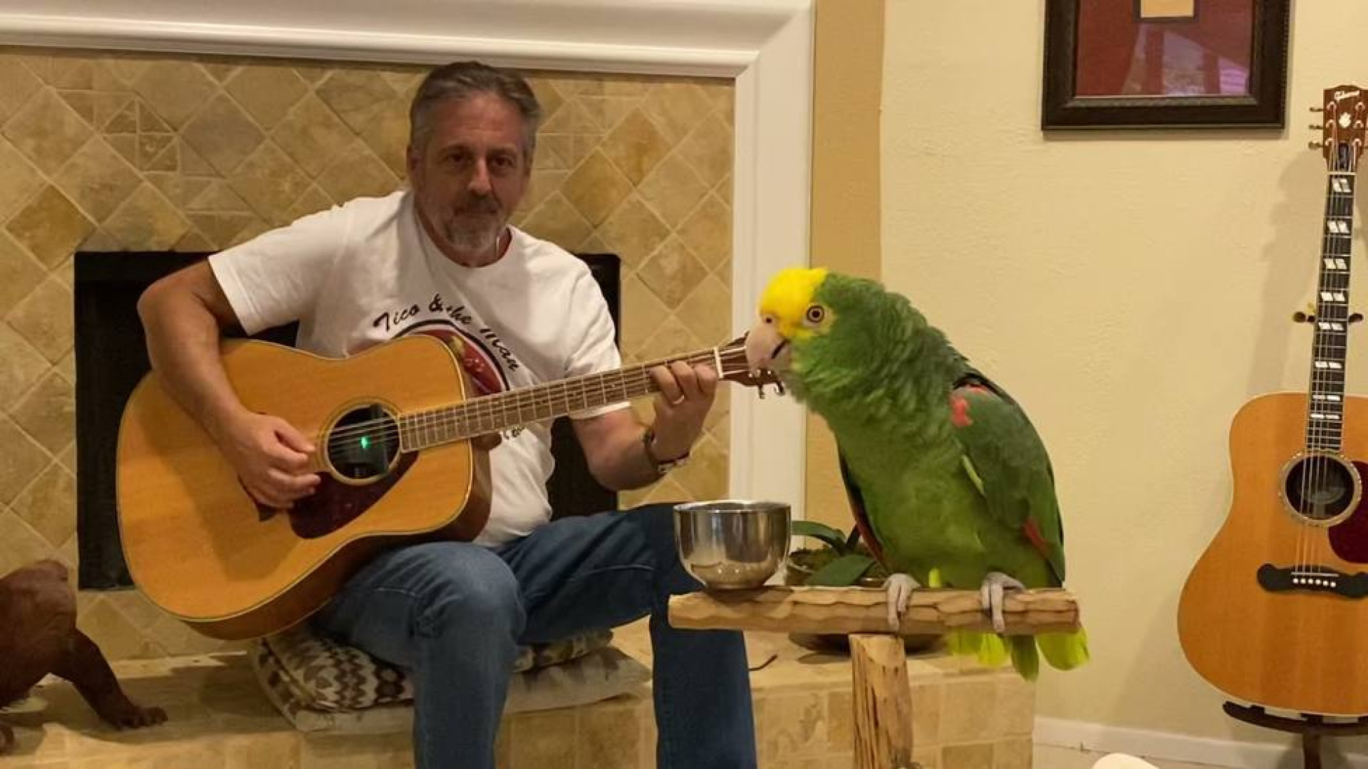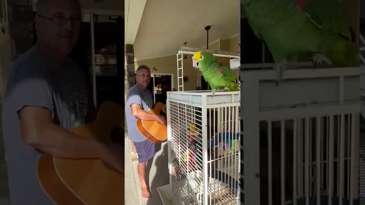 Попугай поет под гитару