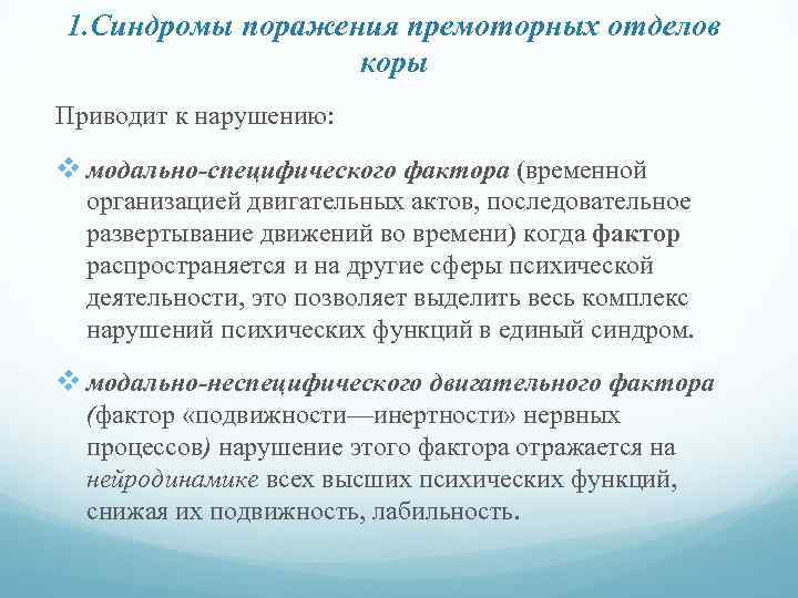 Поражение премоторной коры