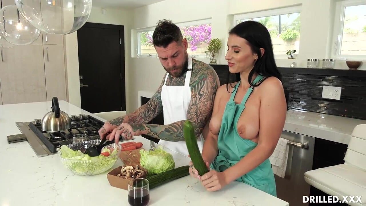 Поразительная брюнеточка сосёт елдак на столе