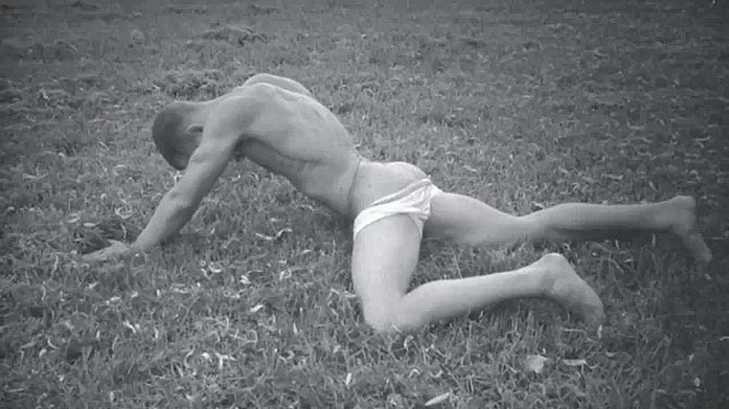 Стараясь скрыть вновь не вовремя напрягшийся пенис, юноша нагнулся, подобрал с пола слетевшие с ног штаны и с трудом натянул их на горевшую попу.