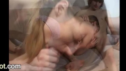 Giovane biondina trombata in orgia con doppia penetrazione