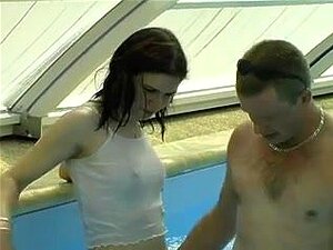 Petite baise très chaude autour de la piscine avec le jardinier